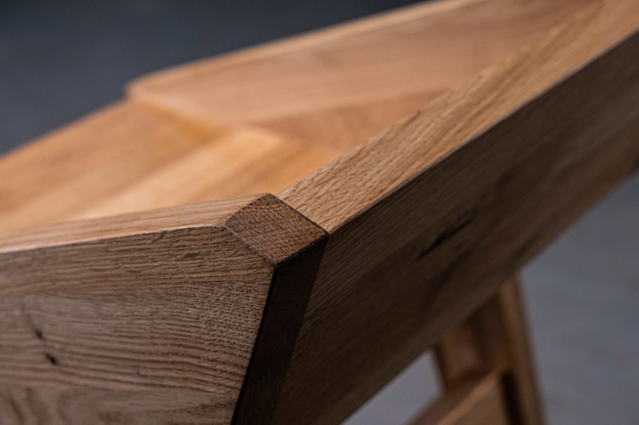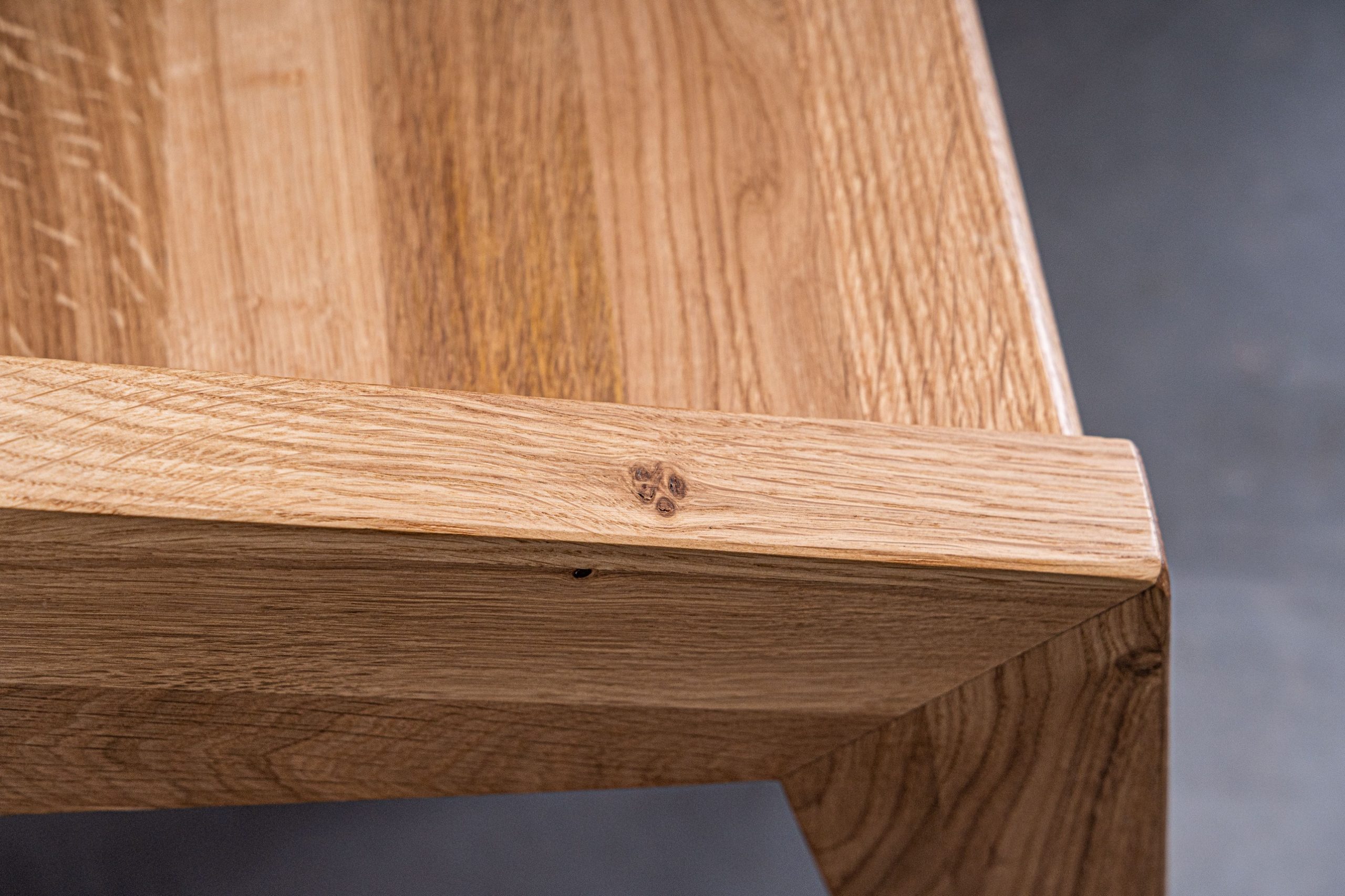 Na zdjęciach hoker został wykonany z drewna dębowego rustykalnego w odcieniu naturalnym.